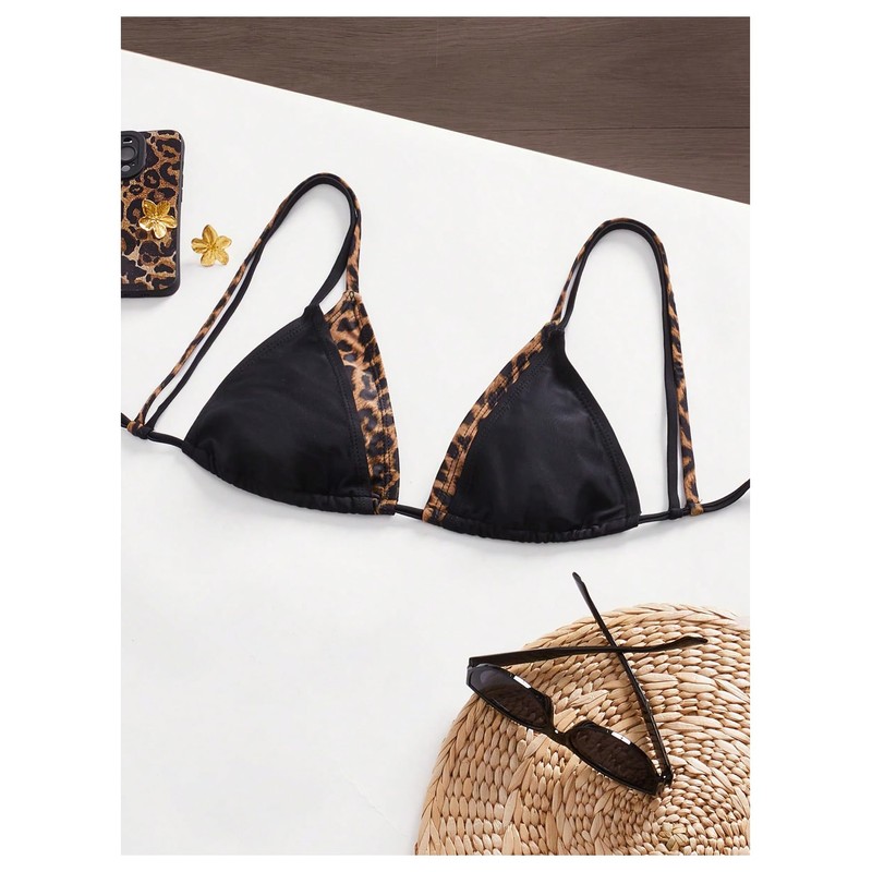 Verdusa Women's Leopard Triangle Bikini Tops Y2k Backless Tied Double Strap S...