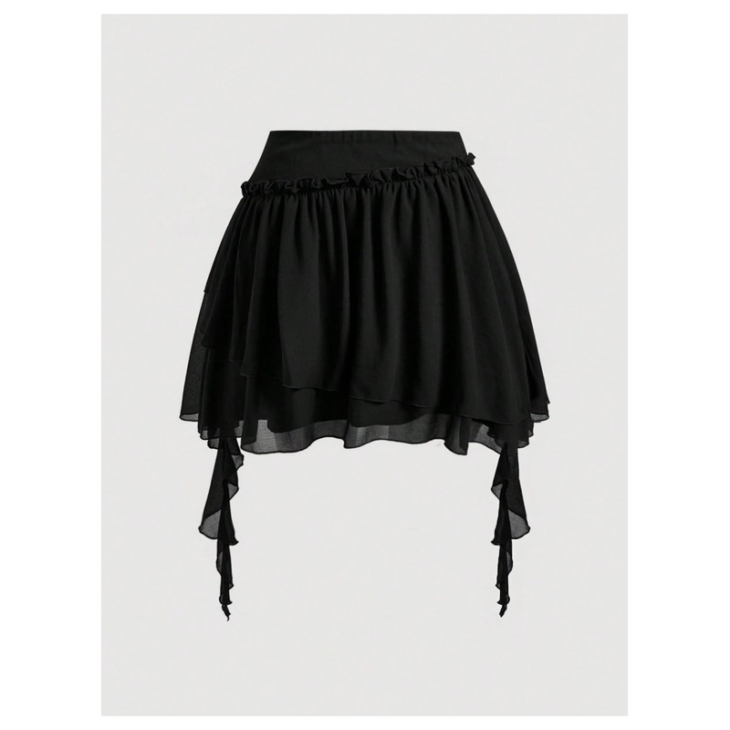 Verdusa Women's Plus Size Layered Tiered Ruffle Short Skirt Fairy High Waist A Line Skirts Black X-Large Plus