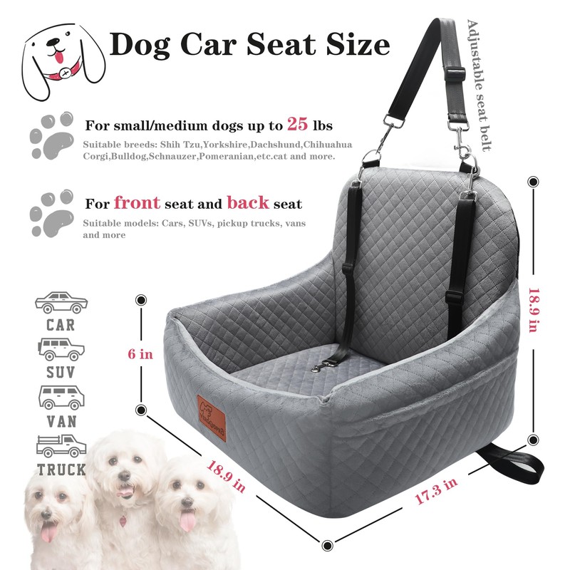 • Applicable Dogs:The dimensions of the dog car seats are 18.9(L)in,17.3(W)in,18.9(H) in.Suitable for most dogs weighing less than 30 pounds,such as Bulldogs,Shih Tzu dogs,Yorkshire Terriers,Dachshunds,Chihuahuas,Corgis,Schnauzers,Pomeranians,etc,cat and more.