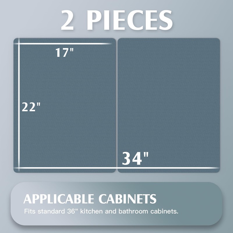 - Two-piece Design Fits More:The under sink mat 22x34 is designed for standard 36" kitchen and bathroom cabinets. The double-piece design of the under kitchen sink mat can be applied to under-sink environments with different plumbing designs, so you won't have to worry about it anymore.
