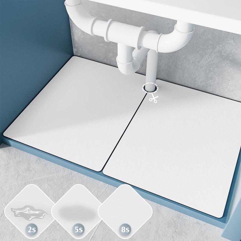 - Super Absorbent & Quick Dry:The under sink protector mat is made of natural diatomaceous earth, which can absorb more than 2-4 times its own weight of water. Not only that, it can also achieve 3 seconds fast drying, avoiding your cabinets from being damaged by water leakage.