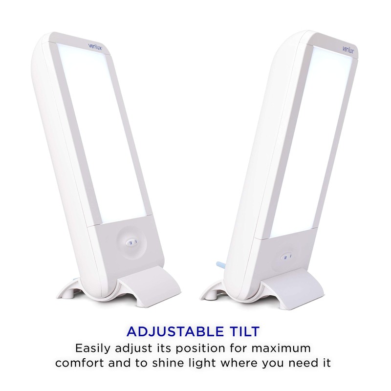 Verilux® HappyLight® Full-Size - UV-Free Therapy Lamp, Bright White Light with 10,000 Lux, Adjustable Brightness, 2 Interchangeable Lenses, Detachable Stand, and Wall Mountable