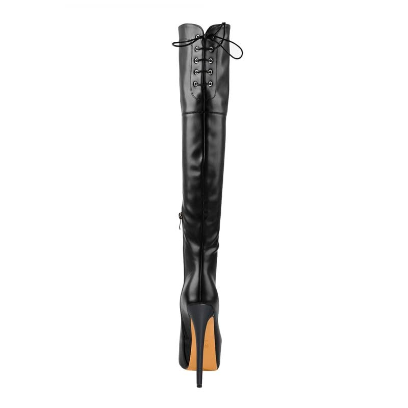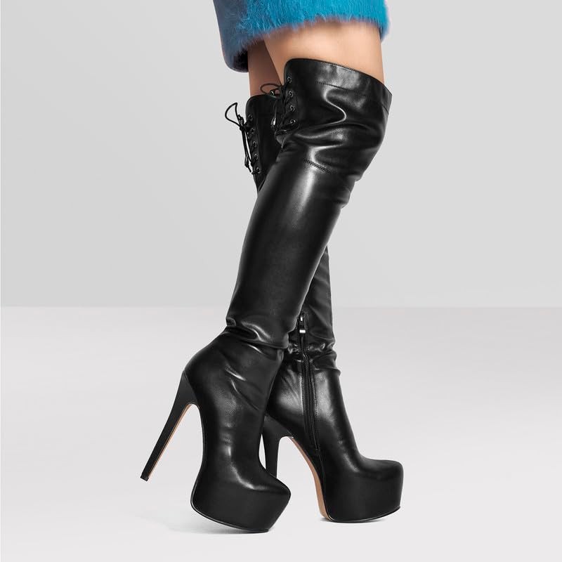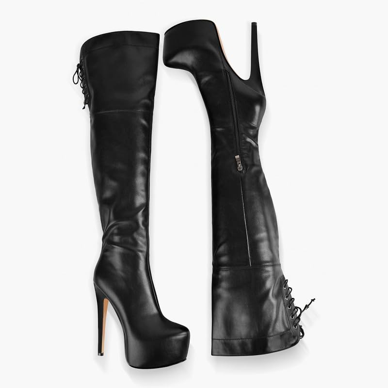 The platform stiletto over-the-knee lace-up boots are characterised by the following features:
