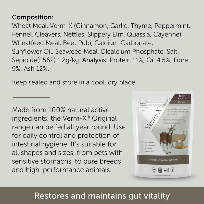 - Unlike one-off chemical tablets Verm-X is a powerful herbal formulation that continuously helps to boost the quality of your sheep and goats gut biome. This helps to manage intestinal hygiene.
