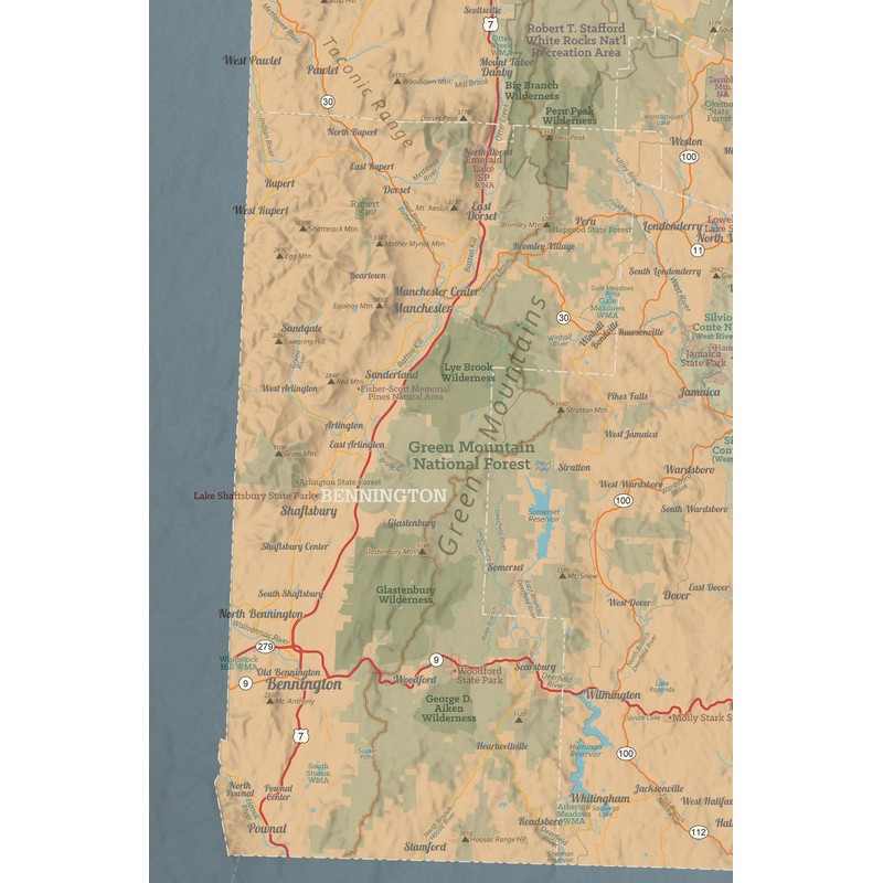 Vermont State Wall Map 36x54 Poster (Tan & Slate Blue | Jumbo Size)