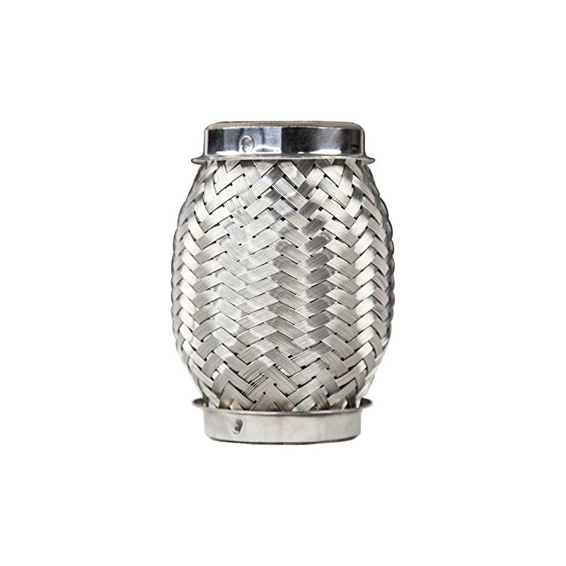 Unlike some inferior flex pipe, our Stainless Steel Flex Couplers are constructed entirely of 300 series stainless steel for long lasting performance. This includes the inner bellow, outer braid, interlock liner and even the weld collars! High luster finish on the braid and collars for a top notch finished product.