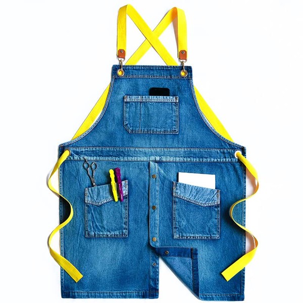 - Durable and fashionable denim apron. The more you use it, the more it will taste and grow into your own apron