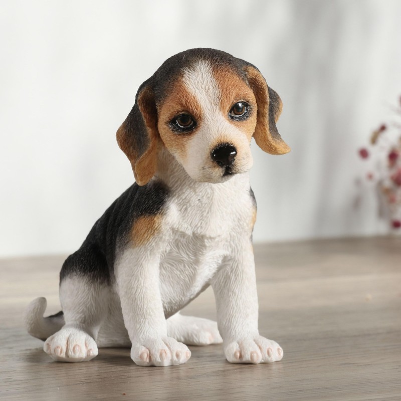 - LIFELIKE DETAILS: A little beagle puppy figurine, sitting with a slightly tilted head brings an adorable charm to any setting. Its realistic beagle features are meticulously sculpted and painted with extreme attention to detail, exuding a sense of lifelike realism. A perfect collectible or decor item for any dog lover, especially those who adore beagles.