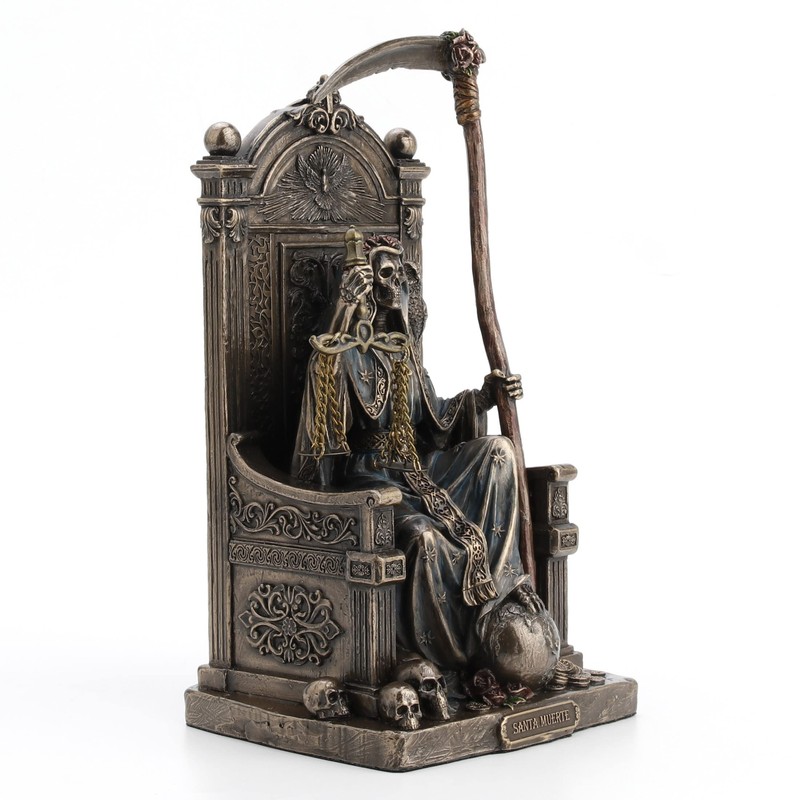 Veronese Design 8 5/8" Sitting Santa Muerte Grim Reaper Scythe and Scale Resin Sculpture Antique Bronze Finish