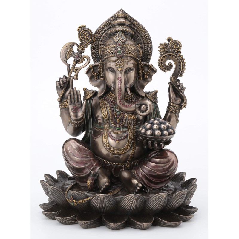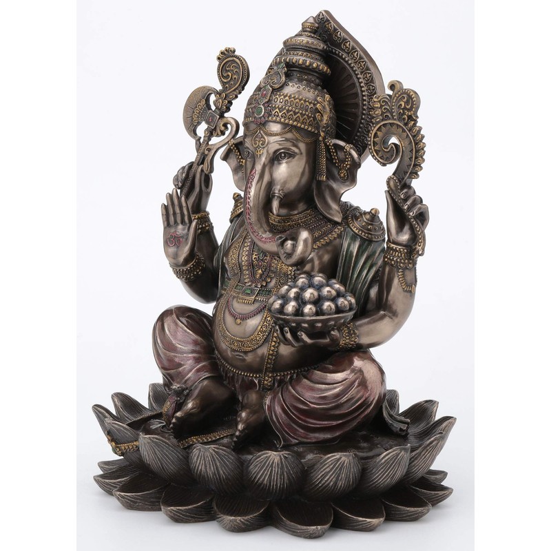 Veronese Design 9 7/8 Inch Lord Ganesha Sitting on Lotus Hindu God Antique Bronze Finish Resin Statue