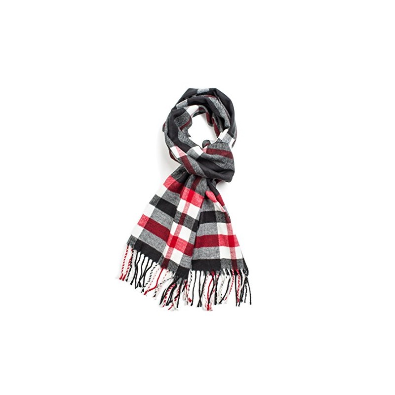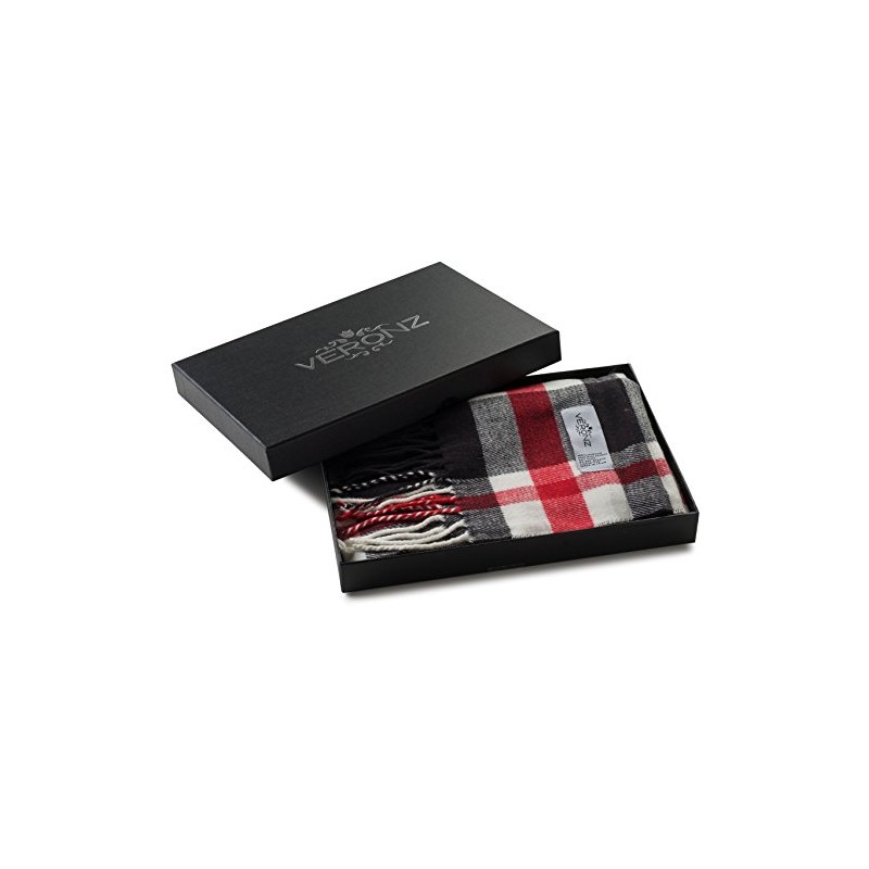 VERONZ Super Soft Luxurious Classic Cashmere Feel Winter Scarf With Gift Box (black red plaid gift)