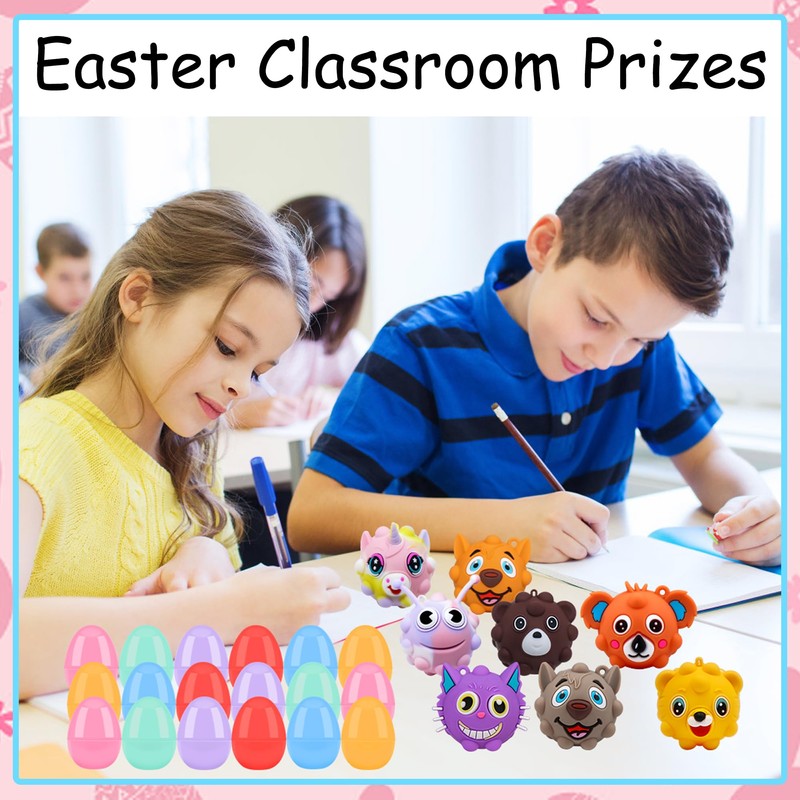 - Give Kids Endless Fun Paquete de juguetes de huevos de Pascua de valor rentable incluye 16 bolas ansiedad adecuadas para niños y niñas, lo que es suficiente para sorprender a todos los niños de tu familia. La caza de Pascua también tiene u nueva opción de juego de juguetes de Pascua. Nuestros huevos llenos de juguetes seguirán siendo dados incluso después de Pascua. Los niños puedenpartir sus juguetes o intercambiar regalos