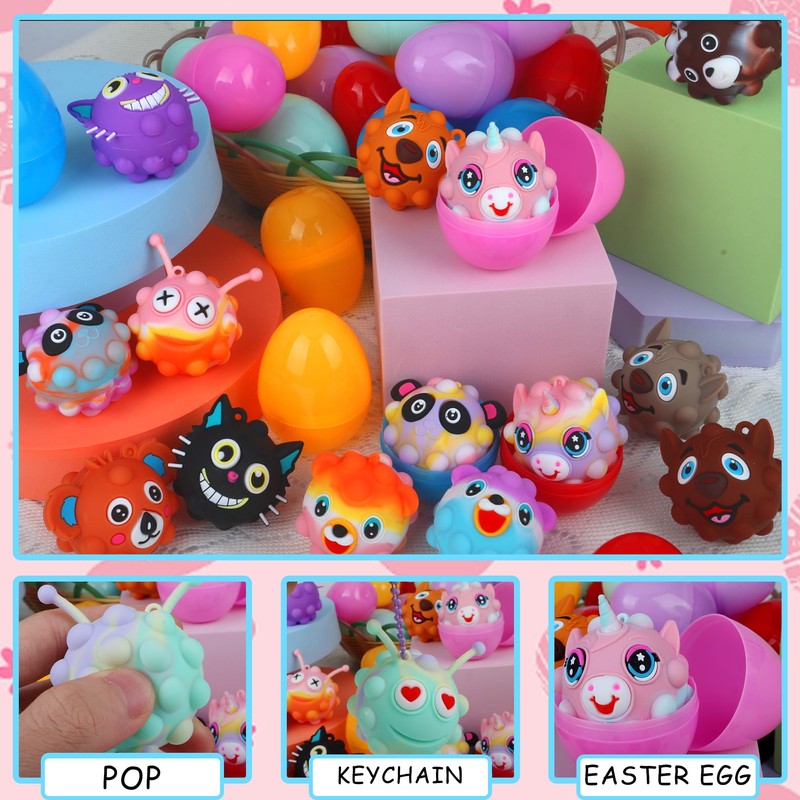 - Huevos de Pascua rellenos con juguetes, 16 huevos de Pascua precargados incluyen 16 huevos de Pascua jumbo y 16 bolas diferentes (5 bolas de eés de elos animales). Todos los juguetes ansiedad de reventar sus bolas se han puesto en huevos de Pascua llenos. No solo no necesitas pasar tiempo eligiendo los juguetes de huevos de Pascua adecuados, sino que tbién no necesitas pasar tiempo poniendo juguetes en huevos de Pascua.