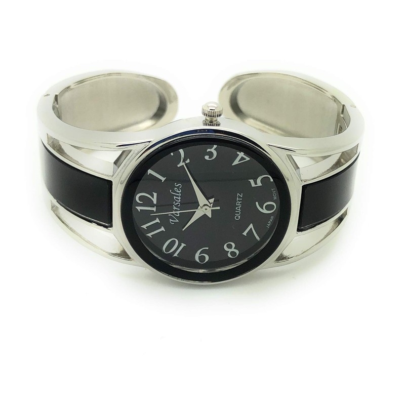 VERSALES Ladies Round Elegant Metal Large Bangle Cuff Fashion Watch Easy Reader Dial Varsales (Black)