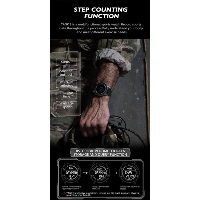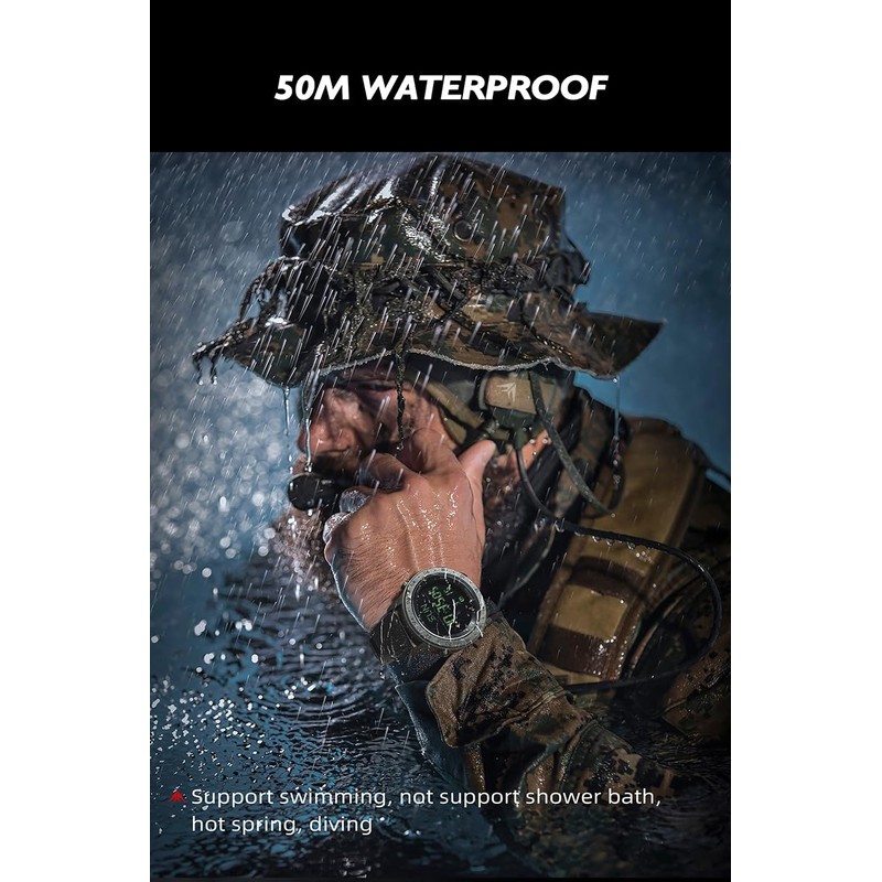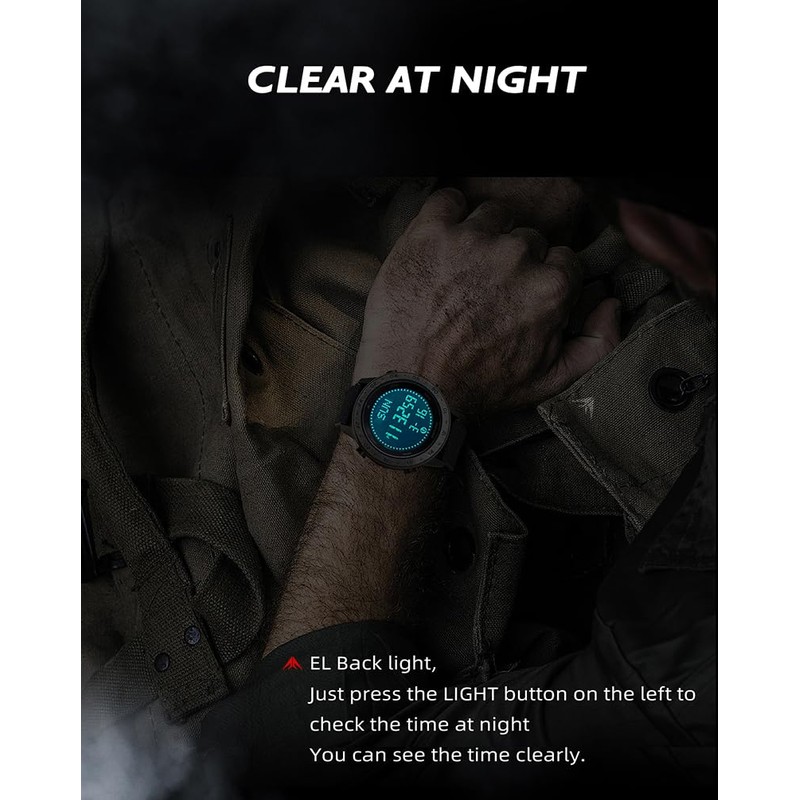 - 【Tactical Features for the Great Outdoors】Equipped with a compass for navigation in the wilderness, a pedometer to track your steps, and a calorie counter to monitor your daily exercise, this watch is perfect for outdoor adventurers and sports enthusiasts alike. Ideal for wilderness exploration and active lifestyles, it helps you stay on top of your fitness goals while enjoying nature.