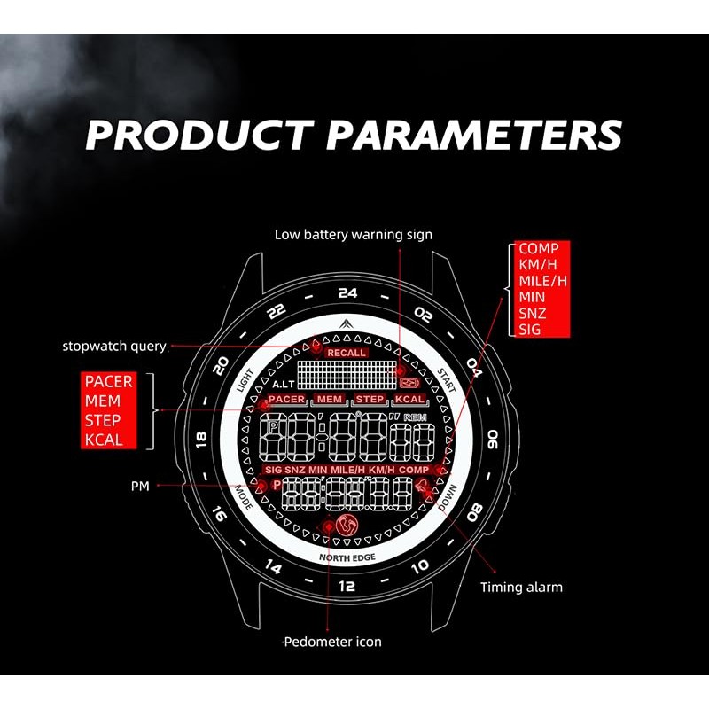 - 【Multifunctional Men's Outdoor Sports Watch】Engineered to fulfill diverse outdoor and military needs, this multifunctional watch is perfect for any adventure. It features a compass, pedometer, and personal parameter tracking, along with a daily step counter, dual time zones, countdown timer, calorie counter, and metronome. Whether you're hiking, camping, or exploring, this watch has everything you need to stay on track and enhance your outdoor experience.