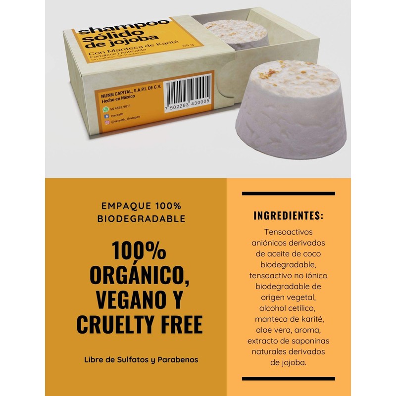- COMPLETAMENTE ECOLÓGICO: Es 100% vegano, orgánico, biodegradable, no utiliza agua, empaque ecológico y es 100% libre de sulfatos, parabenos, tóxicos y crueldad animal.