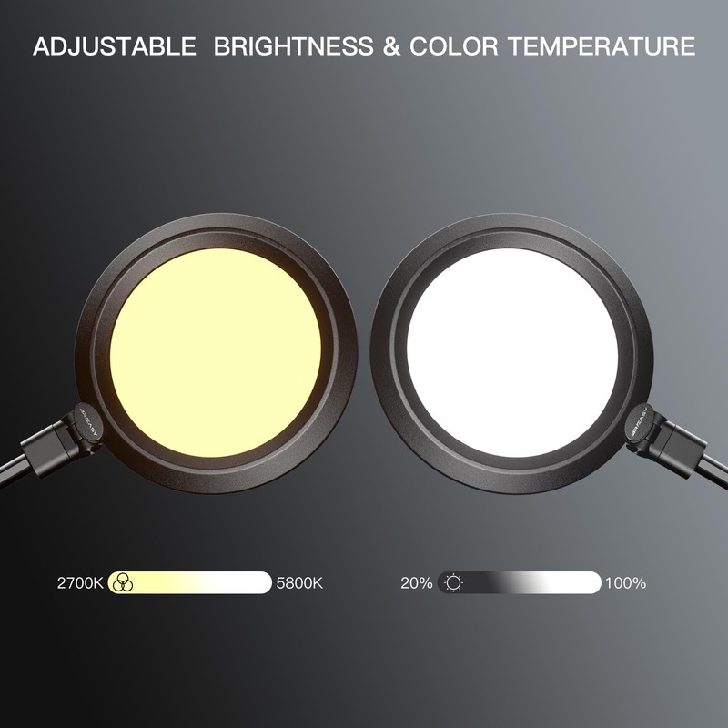 - FLEXIBLE LONG SWING ARM DESK LAMP: The flexible swing arm can adjust the lighting height at will. Three-axis design, free to adjust the angle and rotate the lamp head, allowing you to freely adjust the light direction according to your personal needs. The folding angle of the lamp head can exceed 90 degrees. It can provide even and soft light and focus on your face when you are in video conference, online teaching, video call, live broadcast, makeup and shooting projects