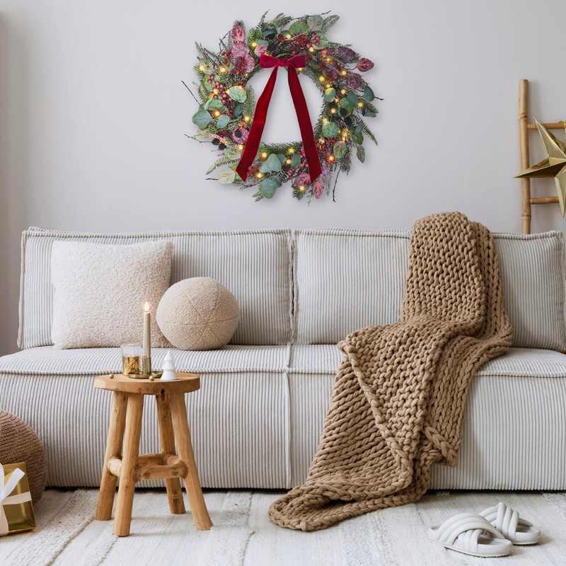 VERT NOOK VERT NOOK Artificial Christmas Wreath, 24 inch Pre-lit with 50 LED ...