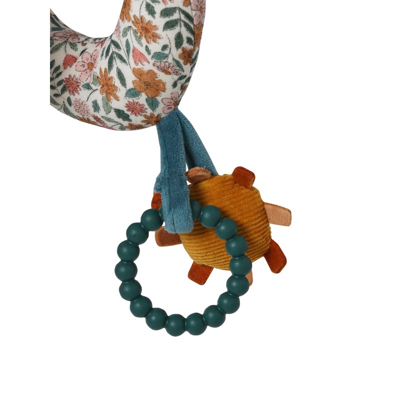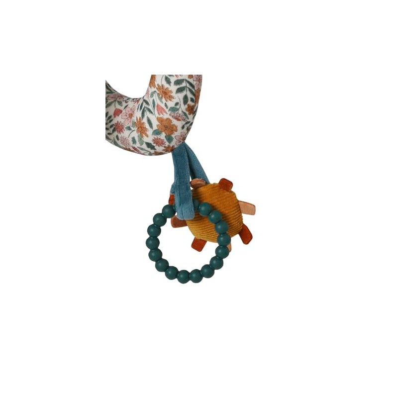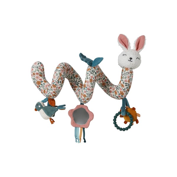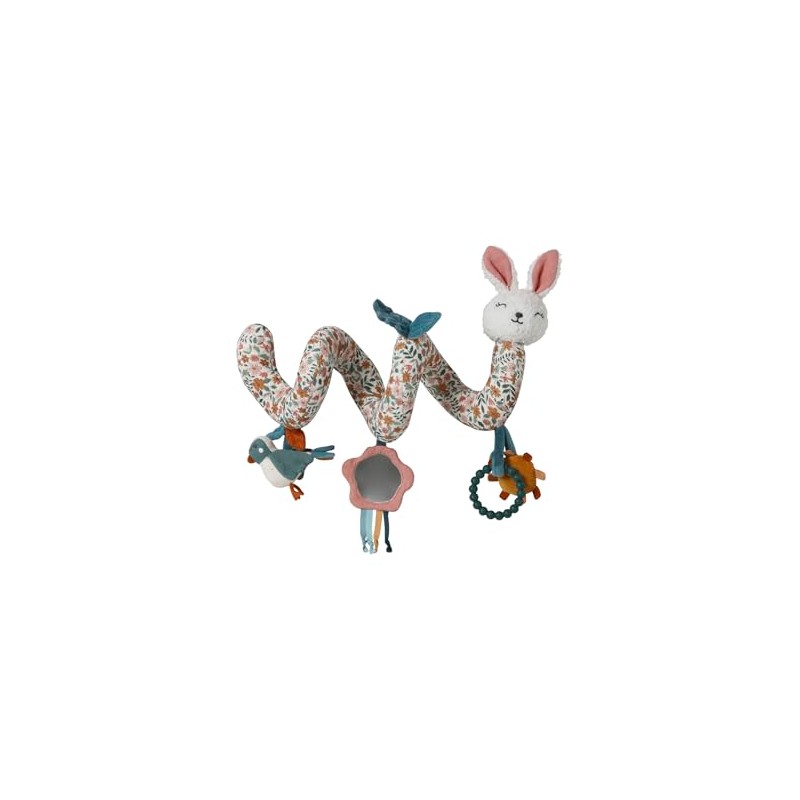 An activity spiral that attaches easily to the bars of the bed, playpen as well as the hanger of the pram or car seat. With its many small accessories, it will be a valuable equipment to arouse curiosity and entertain the baby wherever you are. With its different colours and textures, your child offers a variety of exciting discoveries.