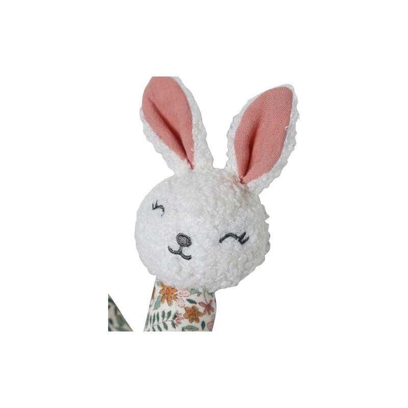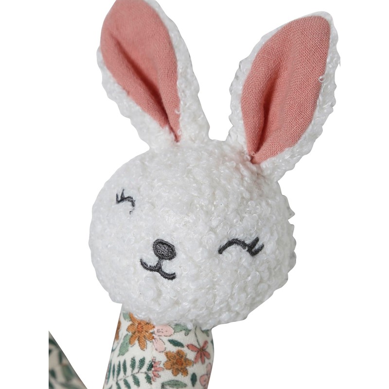 Hanging toy: - A small bird in volume with flying wings and velvet details on the ribbon - A cotton gauze mirror and flower shape with 4 colourful bands at the bottom - a pearl effect silicone teether and a hanging velvet and felt sun with bell inside to stimulate baby's hearing.