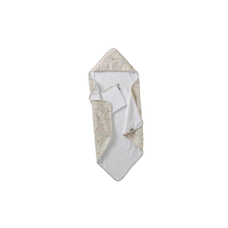 VERTBAUDET Hooded Bath Towel with Cotton Gauze + Wash Mitt Babylon Beige Printed 80 x 80 cm
