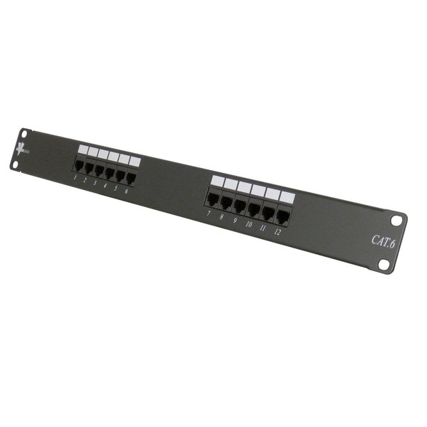 - Cat6 12 Port 19" Horizontal Rackmount 1U Patch Panel