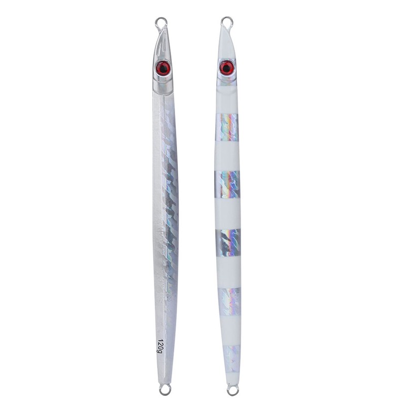1、Made of quality material, easy to sink quickly when making a pause. 2、Striking holographic colors and with multi-angle coating, great for reflecting light and attracting fish from a significant distance. 3、Provided for vertical jigging. Center balance design, slower fall design, assymetric body and a broad slide action. 4、Wide slide action at jerking and irregular falling including sliding back and slow horizontal falling. 5、The eye-catching color has been sprayed with treatment. The luminous side is more striking when fishing at night. fish lure reflect different gloss in motion.