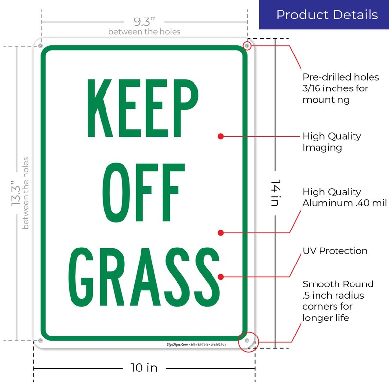 Vertical Keep Off Grass Sign, 10x14 Inches, Rust Free .040 Aluminum, Fade Resistant, Made in USA by
