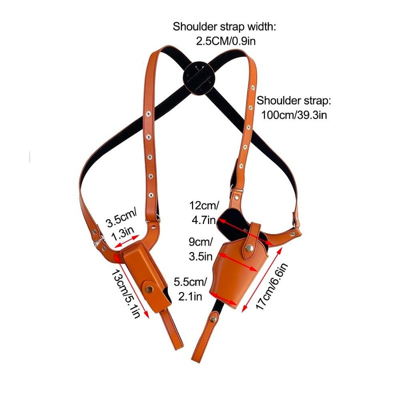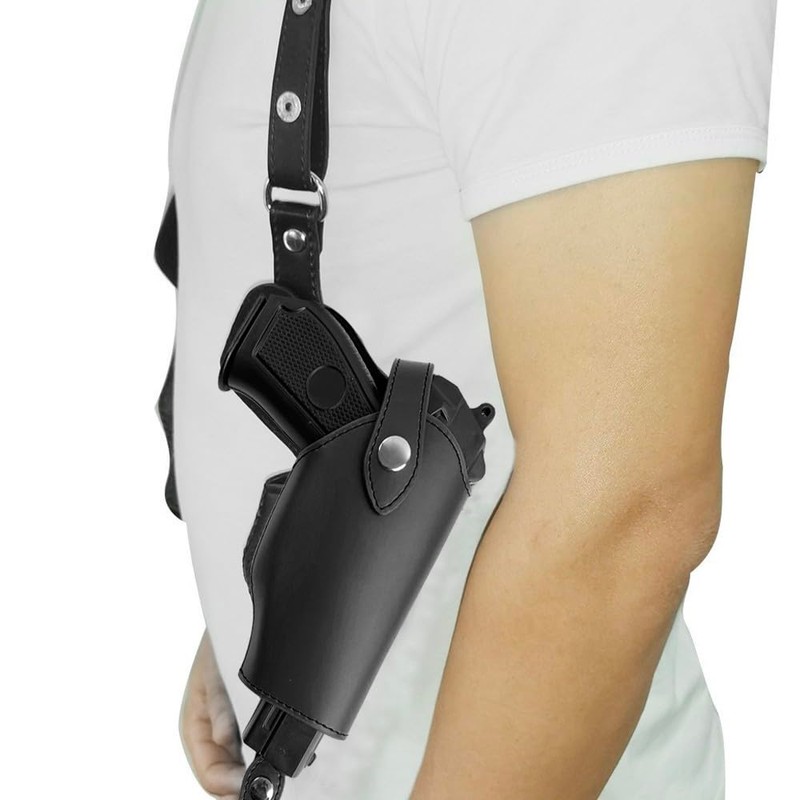 • Leather holster: The vertical shoulder holster is made of PU leather, is corrosion resistant, strong and durable. High quality and well thought-out functionality and features.