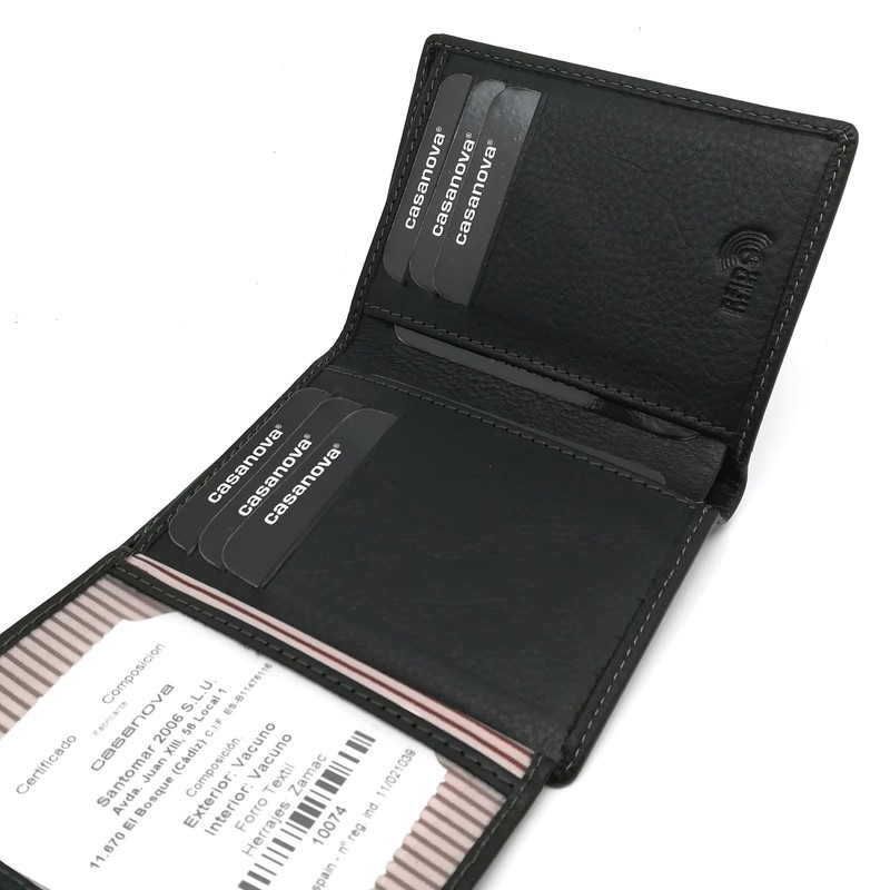 Vertikale Herren-Geldbörse | Ubrique-Haut | Geldbörse und Kartenhalter | Handgefertigt | RFID | 10074 Schwarz