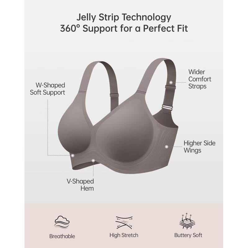- Wirefree Lift Bra - All-Day Support Without Poking or Digging: Say goodbye to painful wires but keep the perfect lift! This wireless bra with support and lift delivers the ideal balance of all-day comfort and natural shaping. W-shaped jelly band (100% wire-free) provide 360° support without digging or poking. 3D Contour Cups adapt to your unique shape for a naturally lifted, hourglass silhouette. Breathable semi-fixed pads stay securely in place (no slipping!)