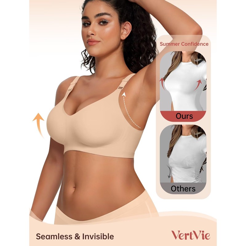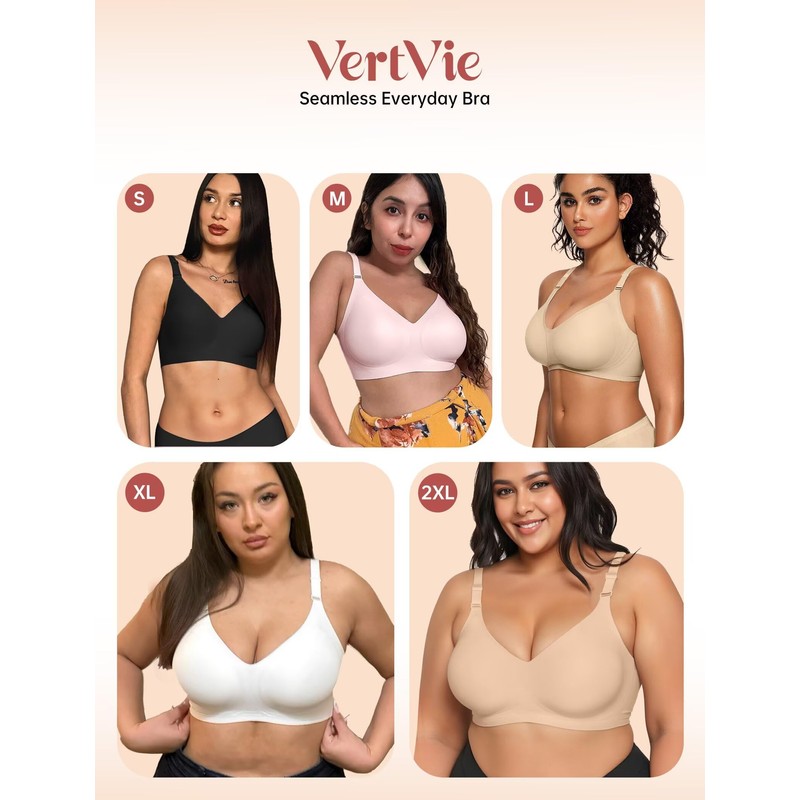Vertvie Womens Wireless Bras No Underwire Push Up Bra Seamless Supportive Ful...