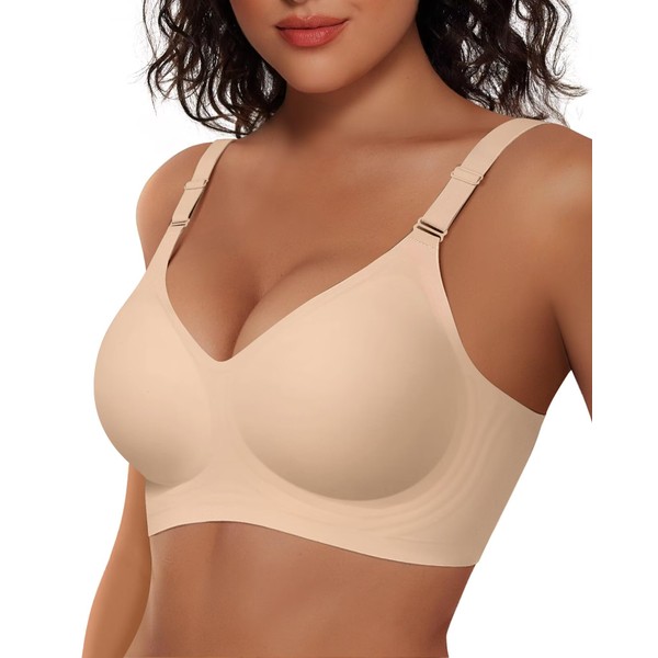 Vertvie Womens Wireless Bras No Underwire Push Up Bra Seamless Supportive Full Coverage Everyday Bras Regular and Plus Size(Warm Sand,Large)