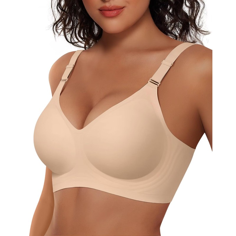 • Wireless Bra with Support and Lift: Enhance your curves effortlessly! This wireless padded bra offers push-up lift & seamless comfort—no lines, no bulk. Our wire-free bra combines innovative ‘W-shaped’ jelly strips and stretch fabric for targeted support & uplift, while 3D molded cups prevent gaps and sagging. Side panels gently gather breast tissue to avoid spillage, and the V-neck design accentuates your curves naturally