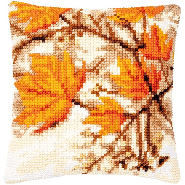 Vervaco Cross Stitch Embroidery Kits Cushion Embroidery Set Beginners Pre-Printed Autumn Leaves DIY Set Creative Set for Adults Decorative Cushion Approx. 40 x 40 cm Craft Set Craftsman Home