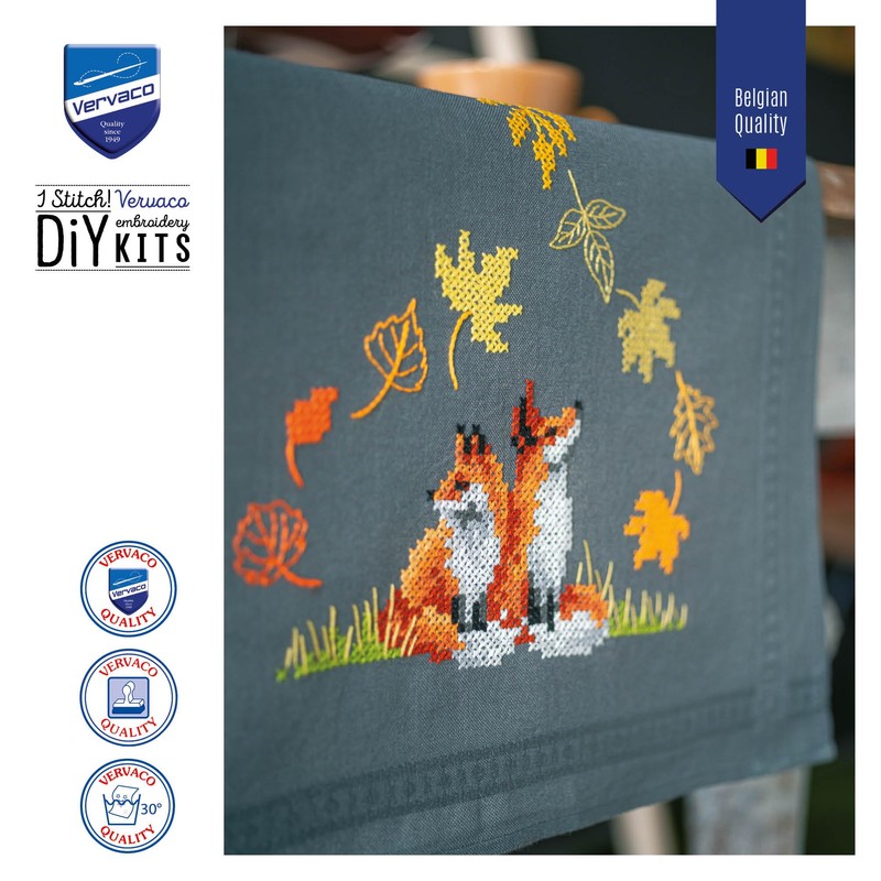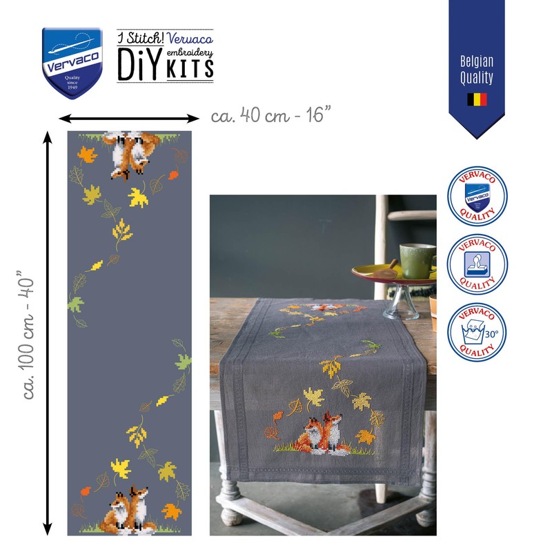 Vervaco Fox Fall Table Runner Kit, Cotton, Multicoloured, 40 x 100 cm