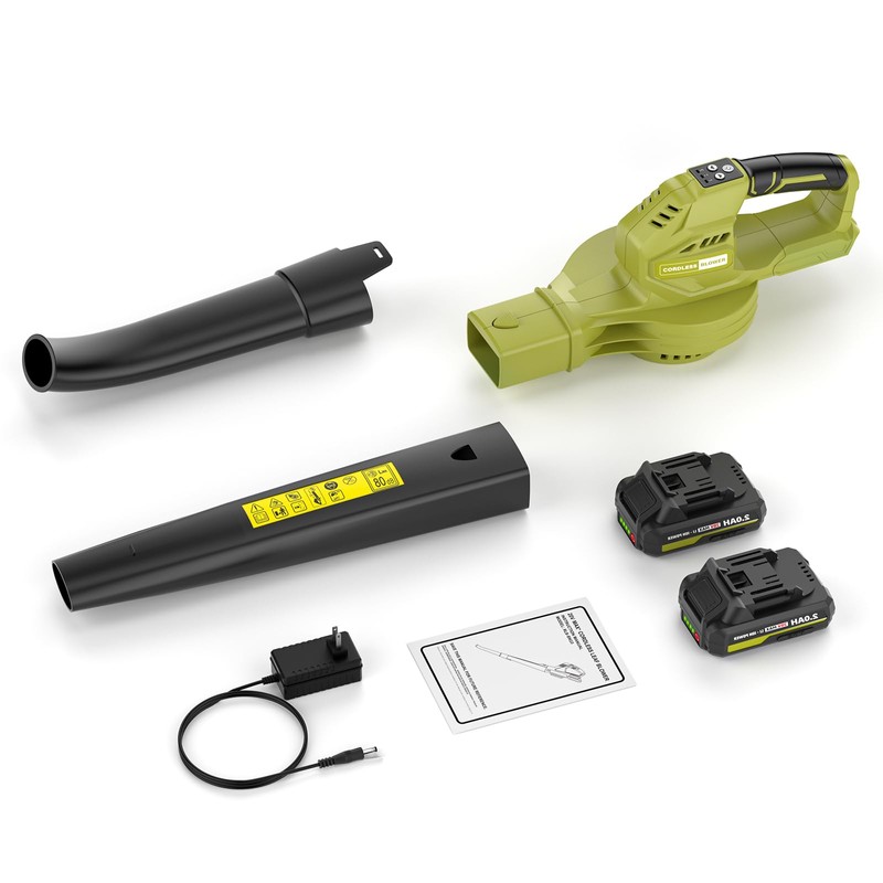 - 2 Li-ion Battery & Fast Charger: VERVEWAVE leaf blower cordless is equipped with two 2.0Ah lithium-ion batteries and 1.5H fast charger, which is convenient for users to replace and charge at any time during working, improving work efficiency; Running time up to 25 mins in high-speed mode, 30 mins in 2-level mode, and 55 mins in low-speed mode (2 batteries)