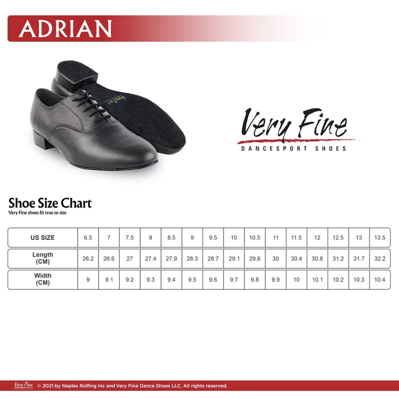 - Each Very Fine Wide Adrian Ballroom Dance Shoe is expertly hand crafted with genuine supple leather exterior for an extraordinary fit and feel. Try them now, your feet will thank you.