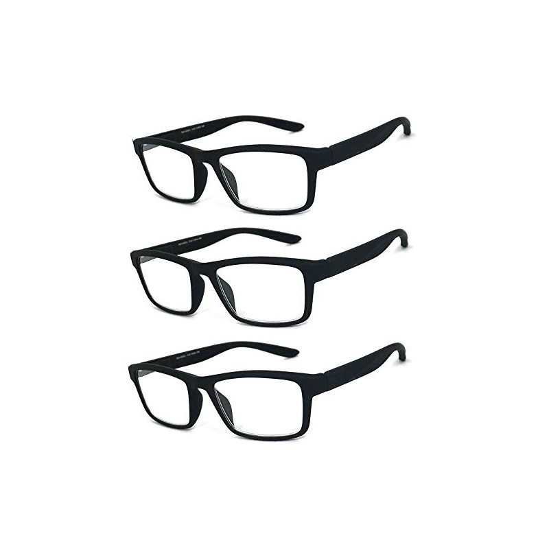 VeryHobby Men Women Retro Square Rubberized Frame Reading Glasses Spring Hinges (3 Pairs - Black/Black/Black, 2.25)