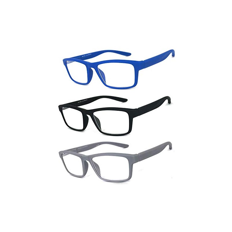 VeryHobby Men Women Retro Square Rubberized Frame Reading Glasses Spring Hinges (3 Pairs - Blue/Black/Grey, 1.00)