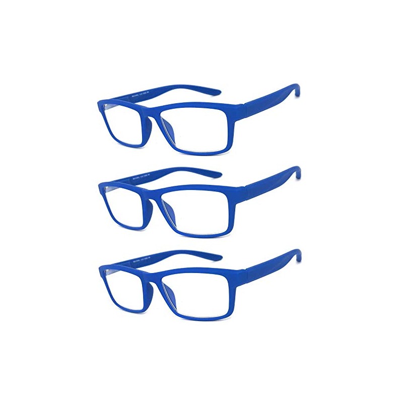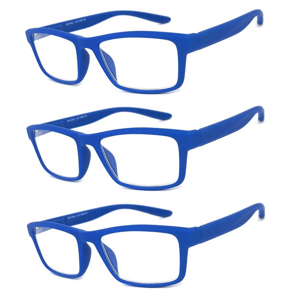 VeryHobby® Men Women Retro Square Rubberized Frame Reading Glasses Spring Hinges (3 Pairs - Blue/Blue/Blue, +1.75)