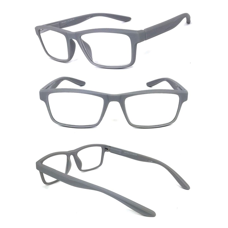 VeryHobby Men Women Retro Square Rubberized Frame Reading Glasses Spring Hinges (Gray, 1.25)