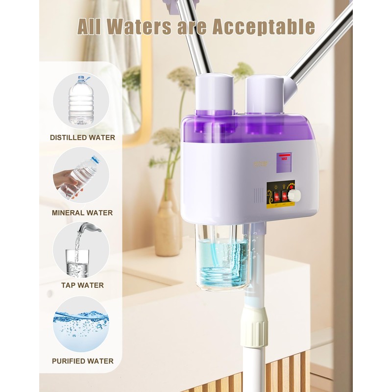 - Suitable for all waters: We adopt optimized and upgraded design, this steamer facial is suitable for all water quality, you can rest assured that it can be applied, but please be careful not to drop essential oils into the water.