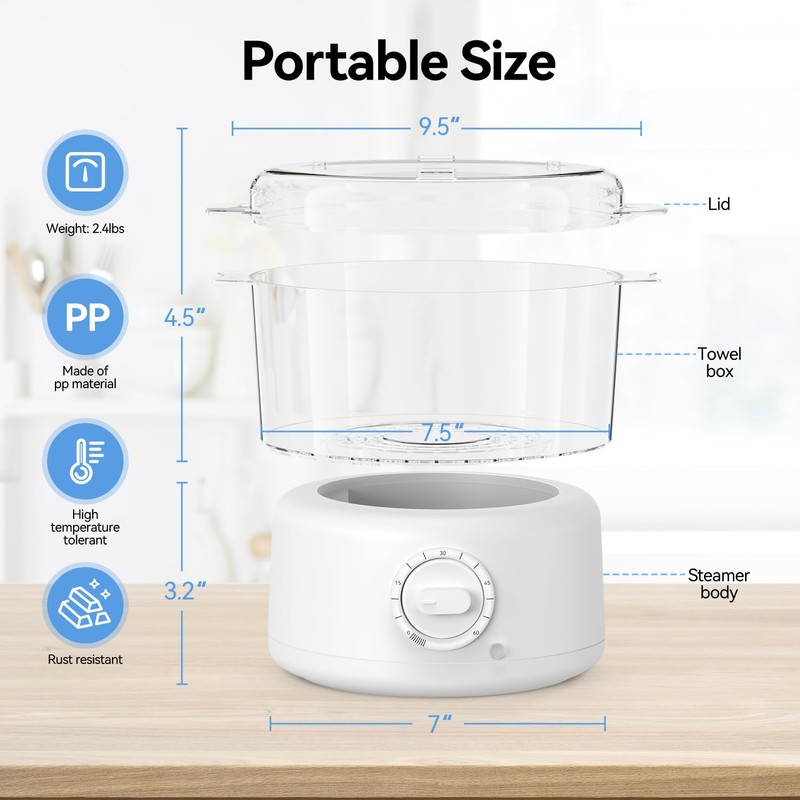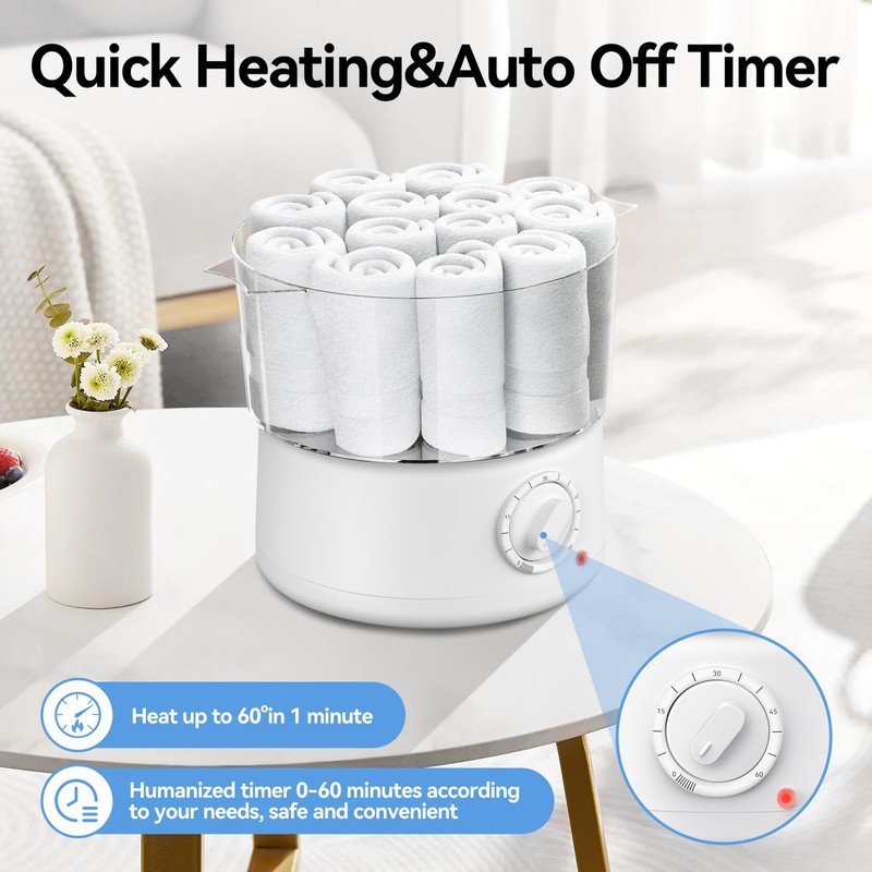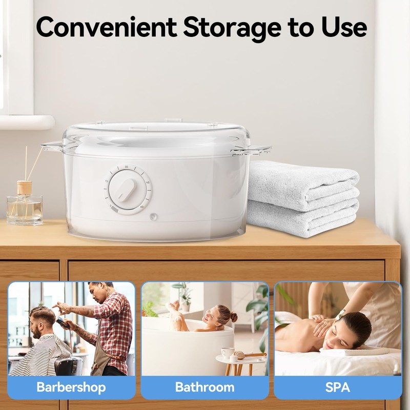 - Multi-Function Heating: The one-key rotation button allows you to set heating times from 0 to 60 minutes. This towel steamer for facials bucket is versatile, ideal for home spas, beauty salons, and relaxation areas