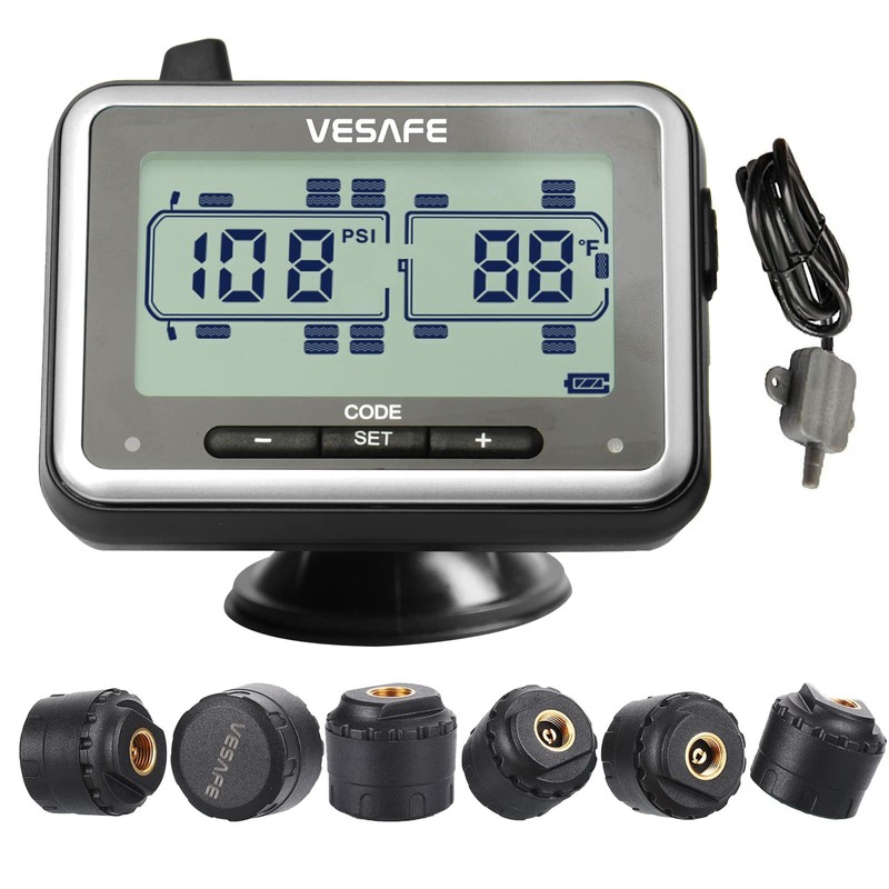 Vesafe TPMS, Wireless Tire Pressure Monitoring System for RV, Trailer, Coach, Motor Home, Fifth Wheel, Including a Signal Booster and 6 Anti-Theft sensors.
