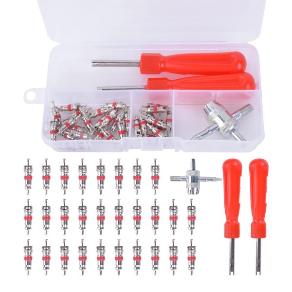 - ✿Package: comes with 30 valve stem cores, 2 valve core removers and 1 4 in 1 tire valve repair tool and 1 plastic storage box.