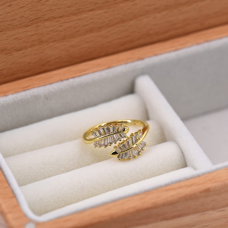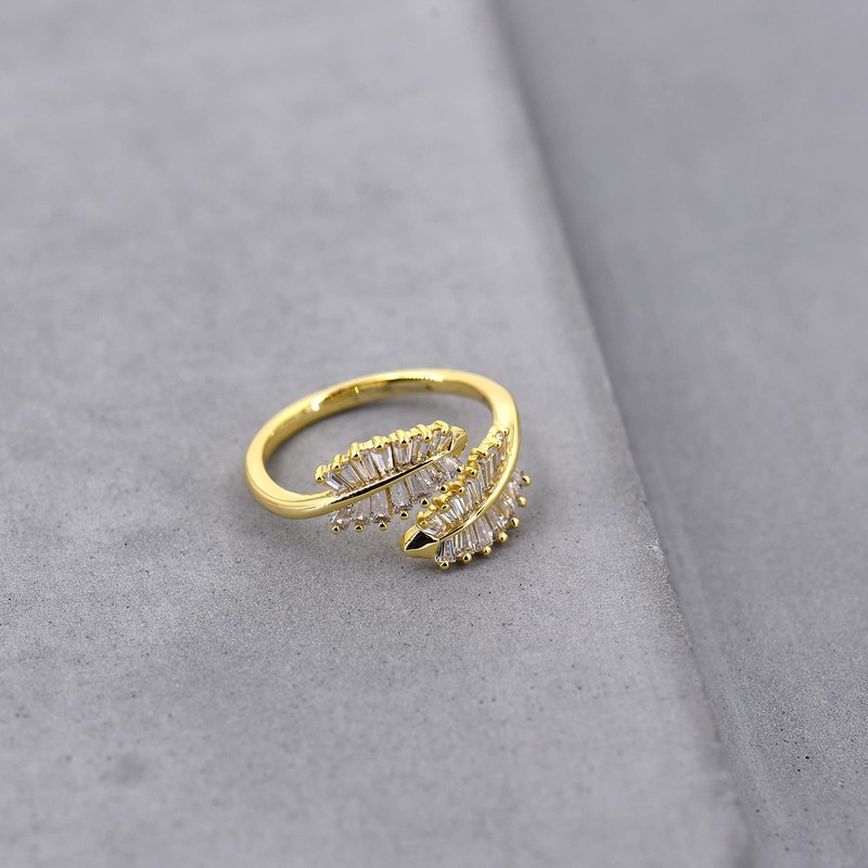 Vescence 18K Gold Plated Dainty Leaf Open Ring Double Leaf Wrap Rings Adjustable | CZ Stacking Ring in Gold | Unique Statement Ring Cocktail Party Ring Hypoallergenic