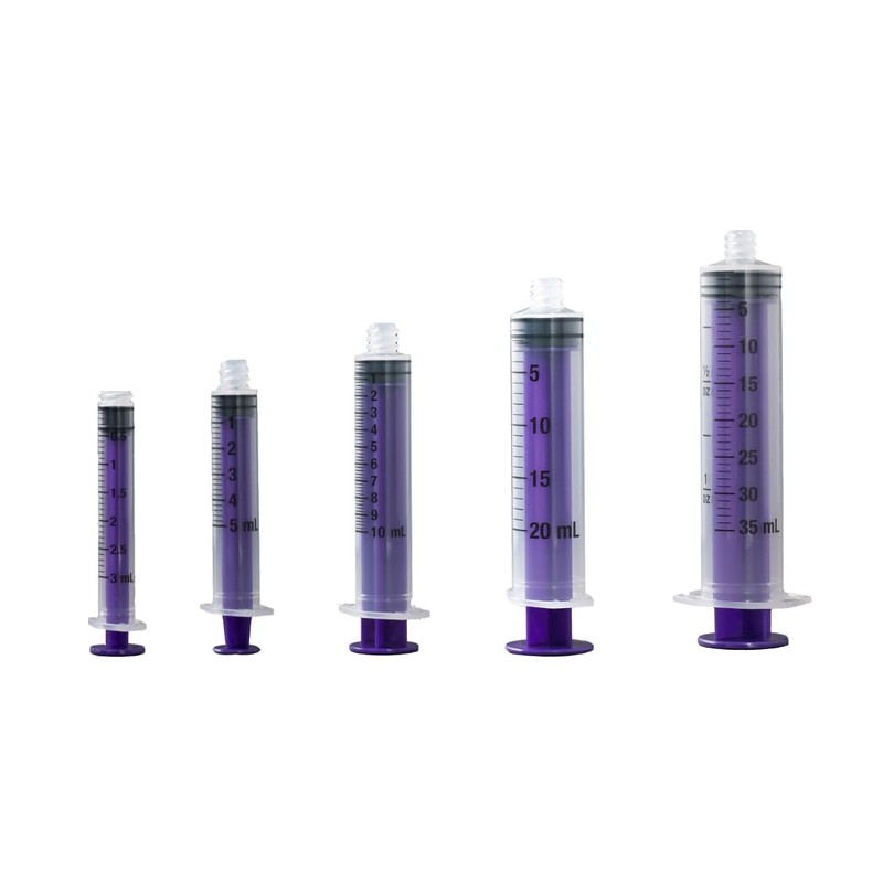 - Single-use enteral-specific syringes for use in initial tube placement, flushing/hydration, bolus feeding, administering medication, and irrigation.