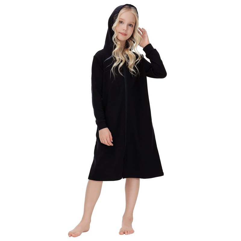 Veseacky Kids Cotton-Poly Blend Bath Robe Soft Lightweight Long Black Beach C...
